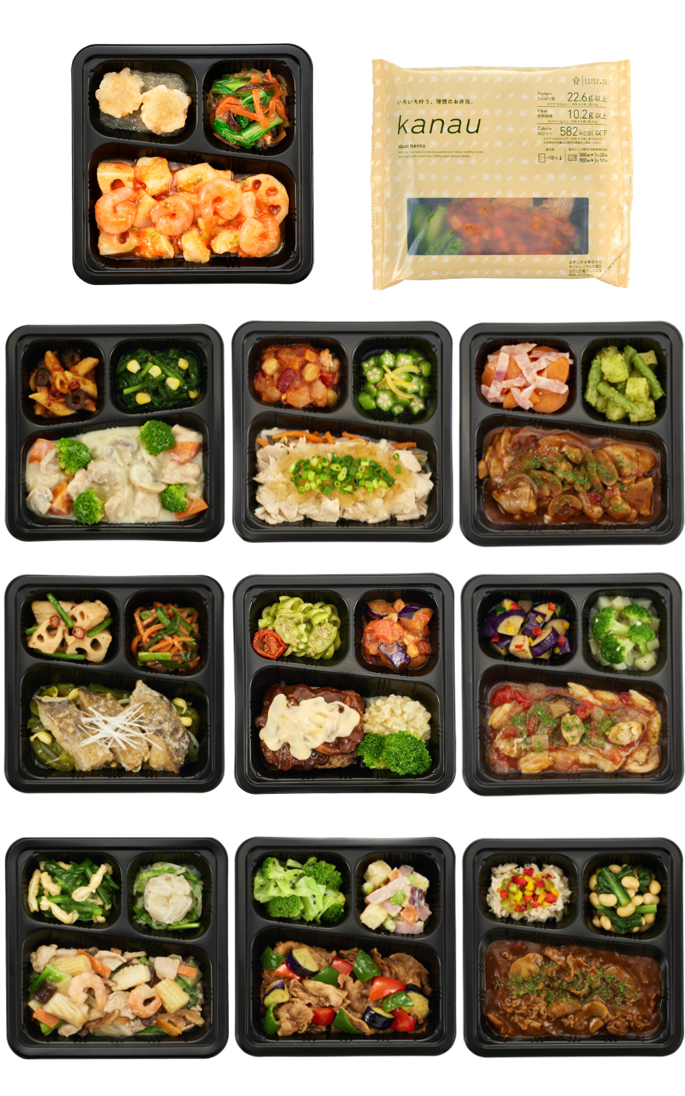 おかず10種ともち麦ごはん(150g)が10食入ったセットです。