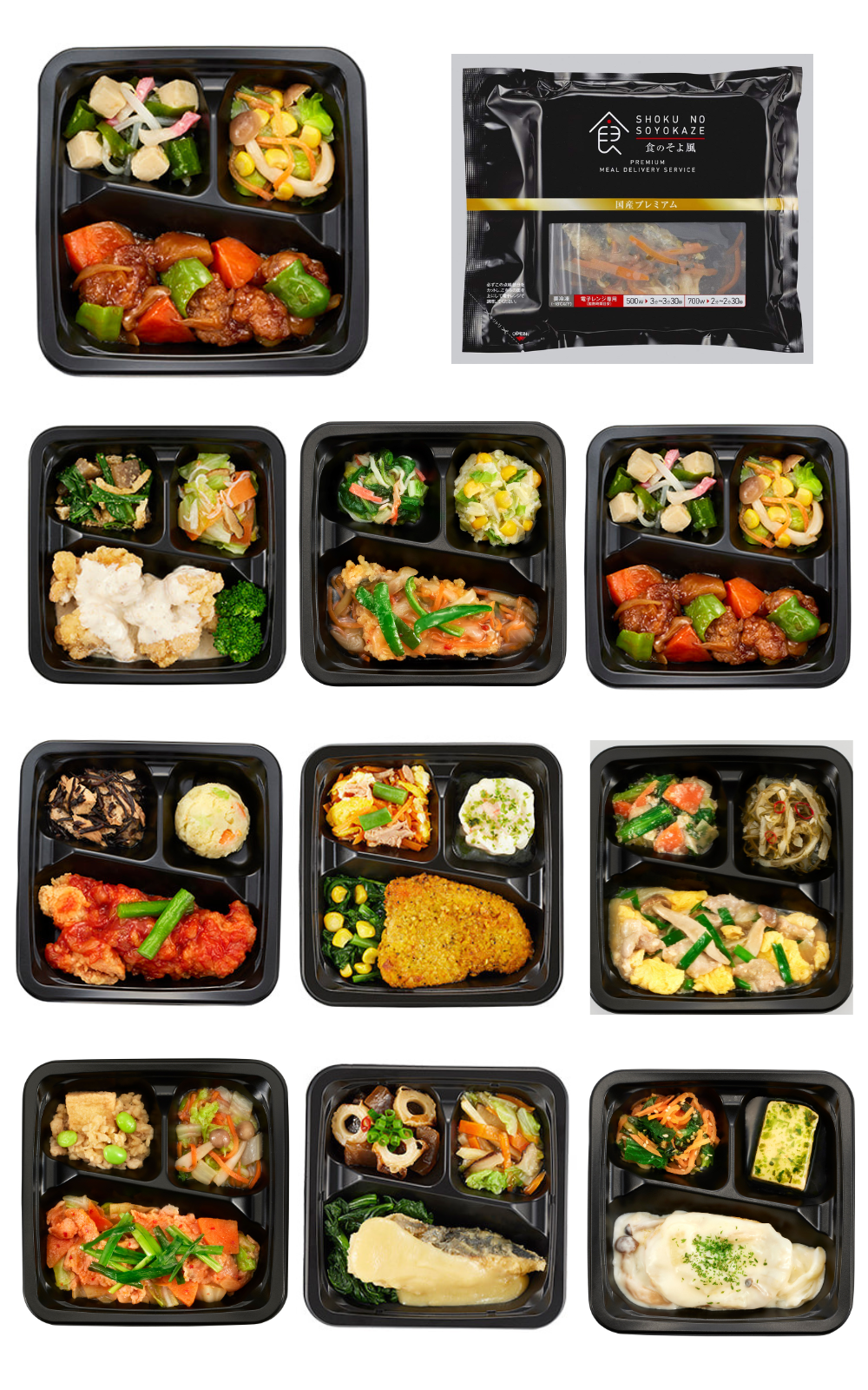 おかず10種と冷凍ごはん(180g)が10食入ったセットです。